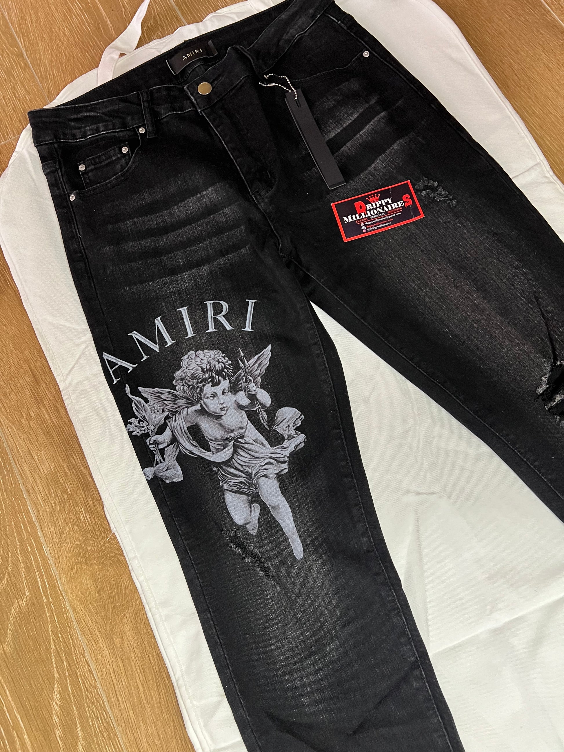 Get the perfect blend of style and comfort with AMIRI Cherub Denim Jeans. These high-quality jeans feature a classic denim design, perfect for any occasion. Made from premium materials and expertly crafted, these jeans are a must-have for any fashion-forward individual. Elevate your wardrobe with AMIRI.