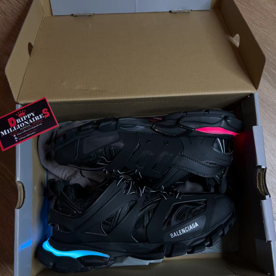 Low-top layered mesh, faux-leather, and rubber sneakers in black.