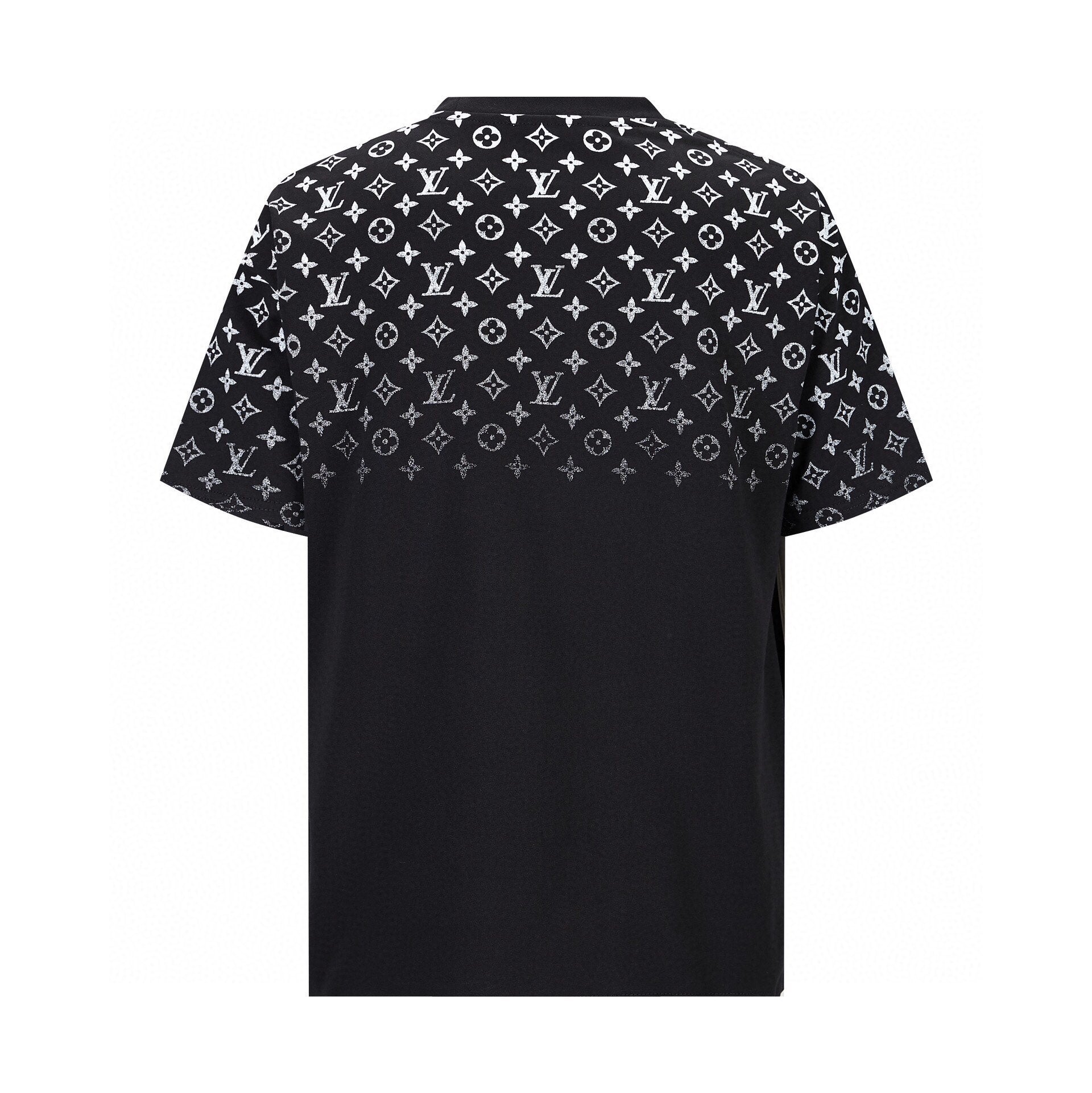 Expertly crafted and designed, this Louis Vuitton t-shirt features a sleek black design with contrasting white text. Made with the finest materials, this t-shirt exudes luxury and sophistication. Perfect for adding a touch of elegance to any wardrobe.