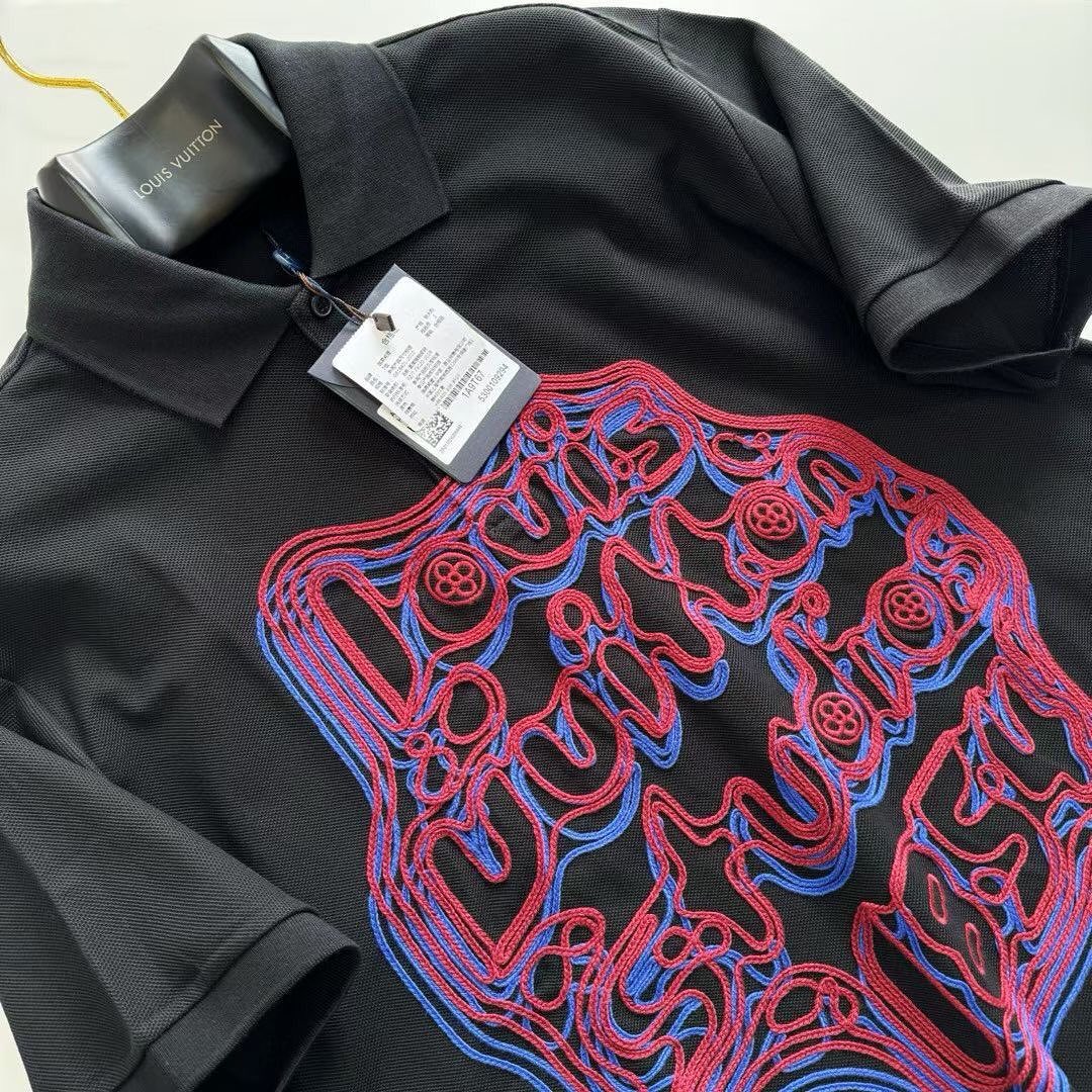 Expertly crafted and designed, this Louis Vuitton t-shirt features a sleek black design with contrasting white text. Made with the finest materials, this t-shirt exudes luxury and sophistication. Perfect for adding a touch of elegance to any wardrobe.