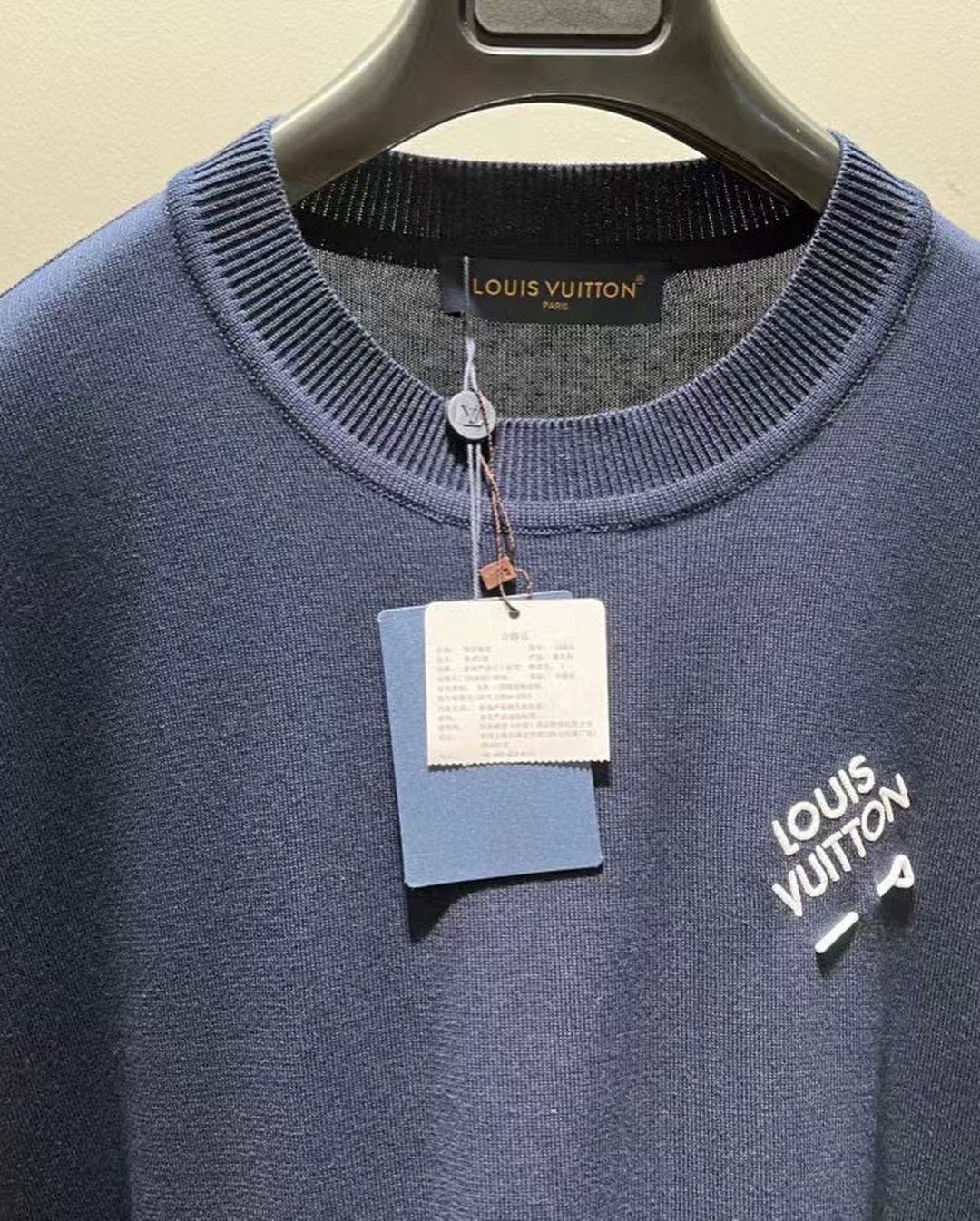 Expertly crafted and designed, this Louis Vuitton t-shirt features a sleek black design with contrasting white text. Made with the finest materials, this t-shirt exudes luxury and sophistication. Perfect for adding a touch of elegance to any wardrobe.