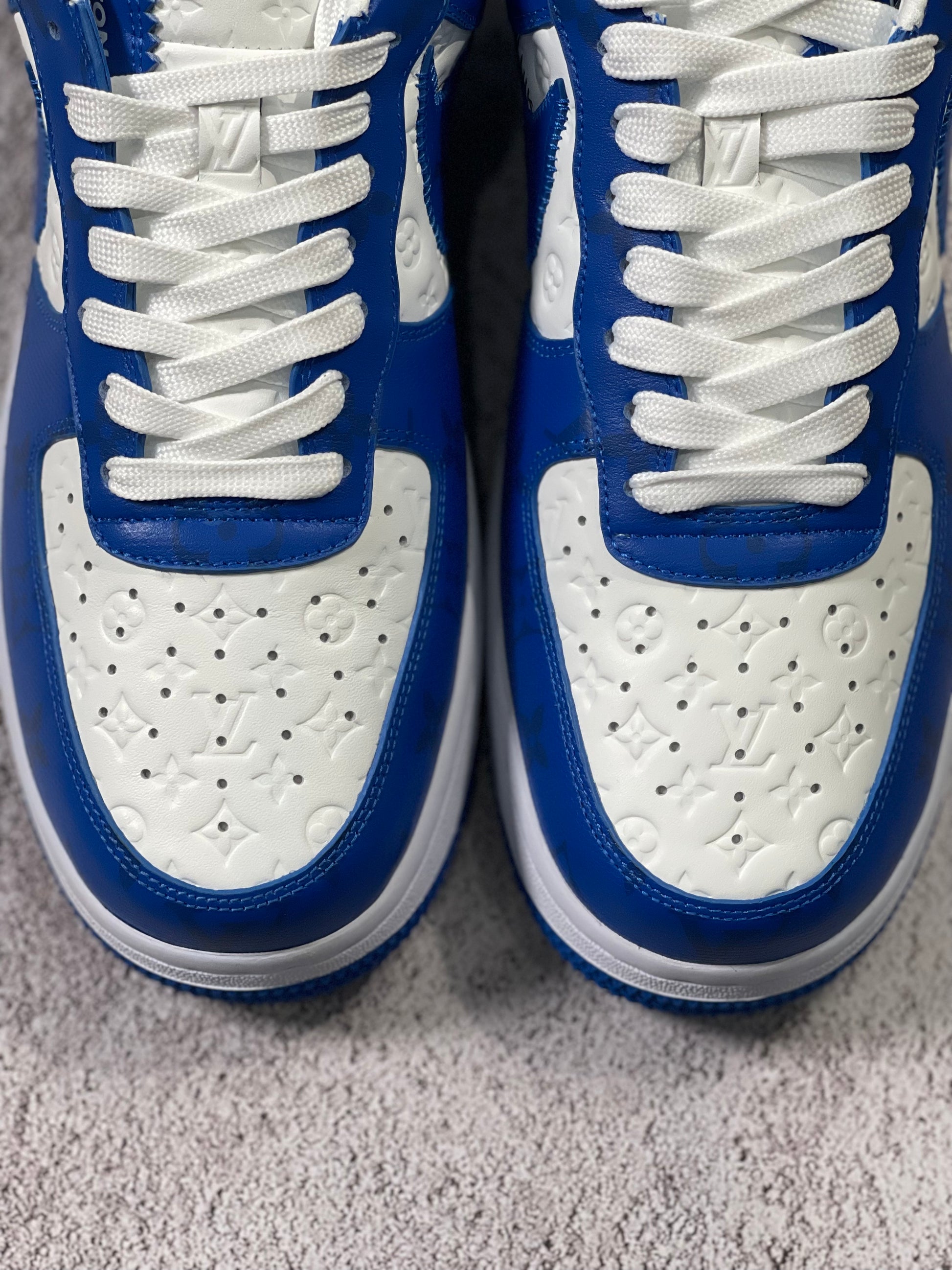 The Nike Air Force 1 Low Louis Vuitton White Red showcases a stunning dual-tone red and white upper made of soft white calf leather, adorned with the LV monogram. The typical golden inscriptions by Virgil Abloh can be found on the inner side of the pair. This creation, presented during the Spring-Summer 2022 Men's Fashion Show, is meticulously handcrafted in Louis Vuitton's Artico factory in Italy.
