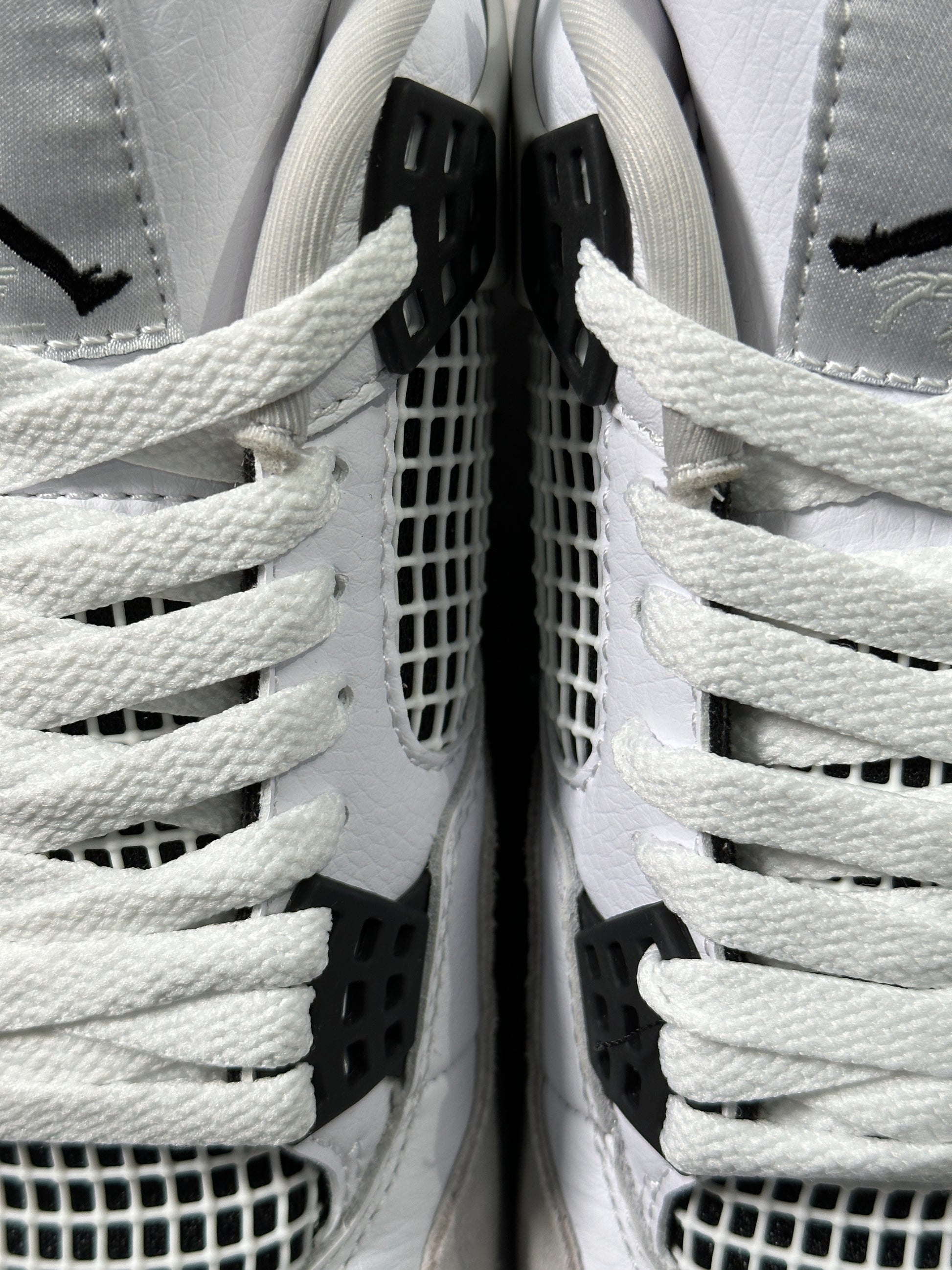 In this late summer of 2023, the iconic Air Jordan 4 is set to receive a new variation, paying tribute to the remarkable feats of Michael Jordan. The sneaker showcases a pristine white leather base, adorned with a resplendent layer of luxurious gray suede. A harmonious fusion that exudes sophistication and style. Adding a touch of elegance, the chrome flaps gracefully complement the eyelets, all seamlessly highlighted by the black accent piece above, where the classic TPU net proudly reigns.