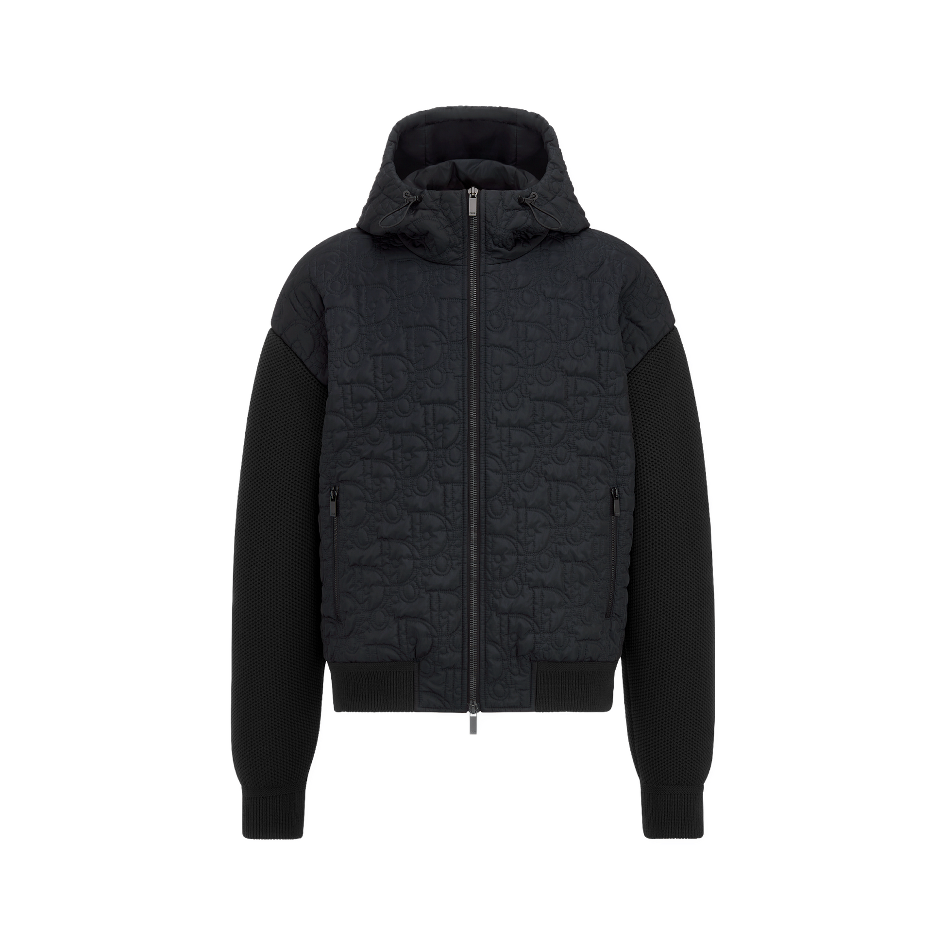 The hooded blouson jacket pays tribute to the House's hallmark Dior Oblique motif. Cut in a black cotton-blend knit, it showcases the quilted Dior Oblique motif on the front and hood. Featuring contrasting materials on the sleeves, the blouson jacket will add an original touch to jeans or track pants.
