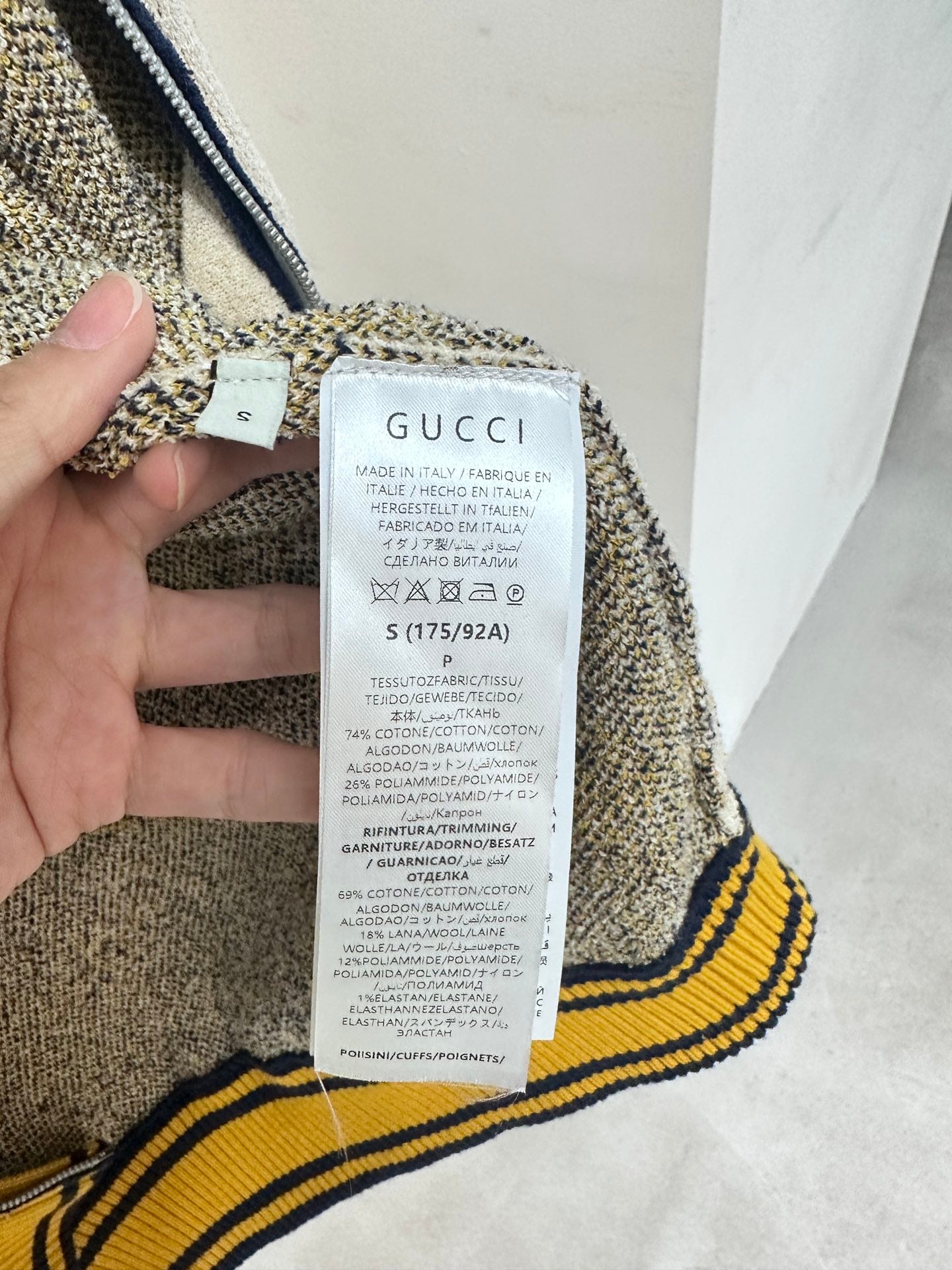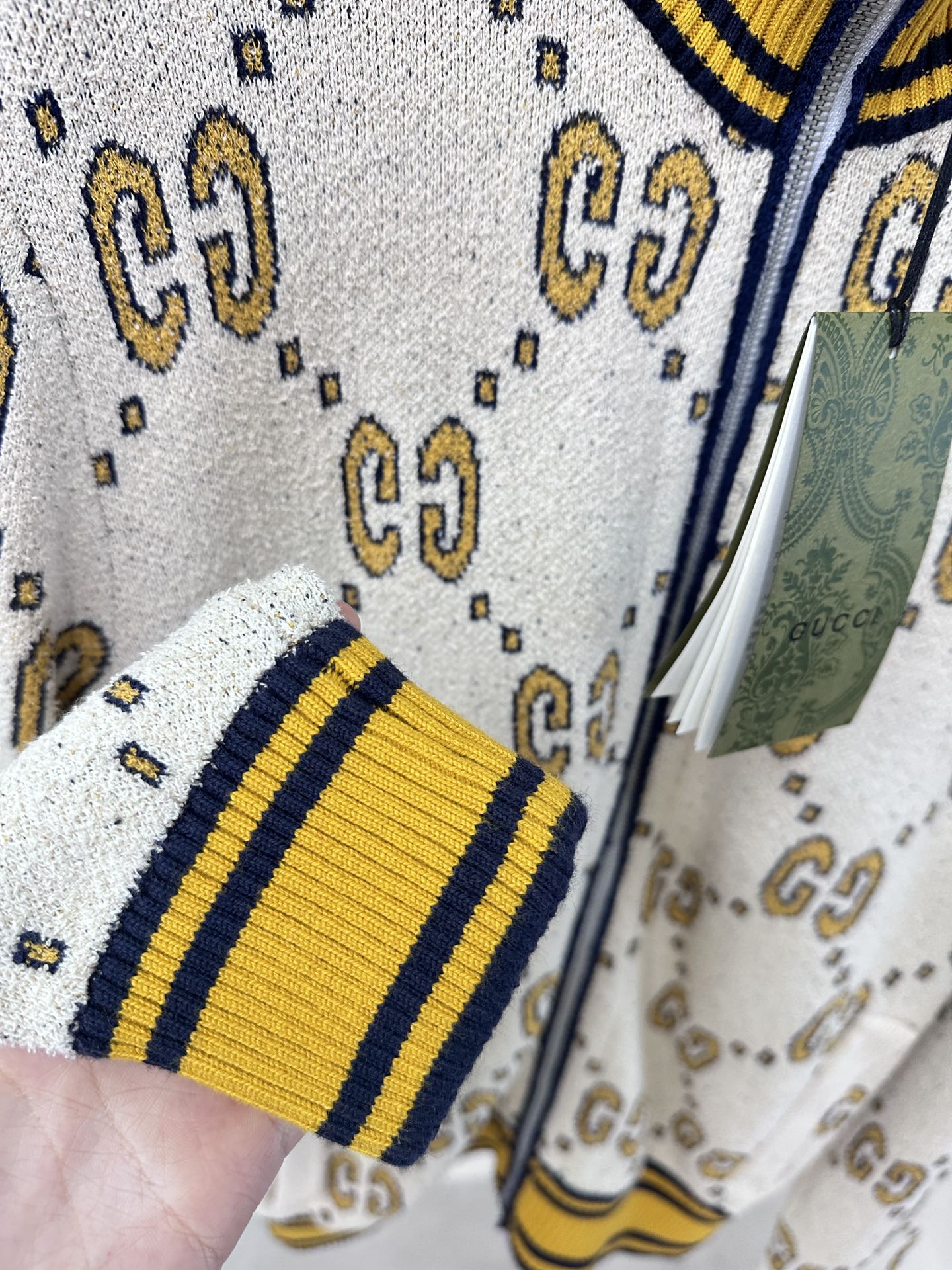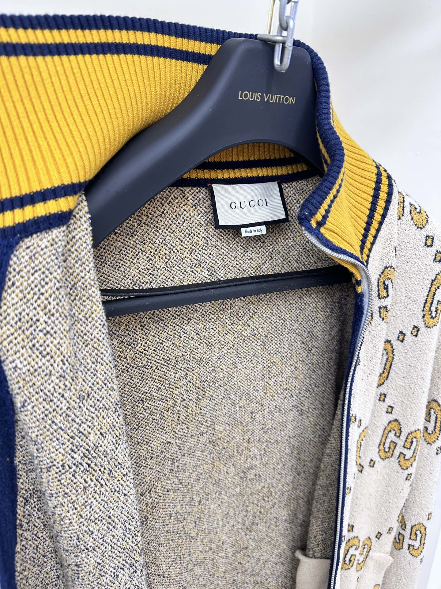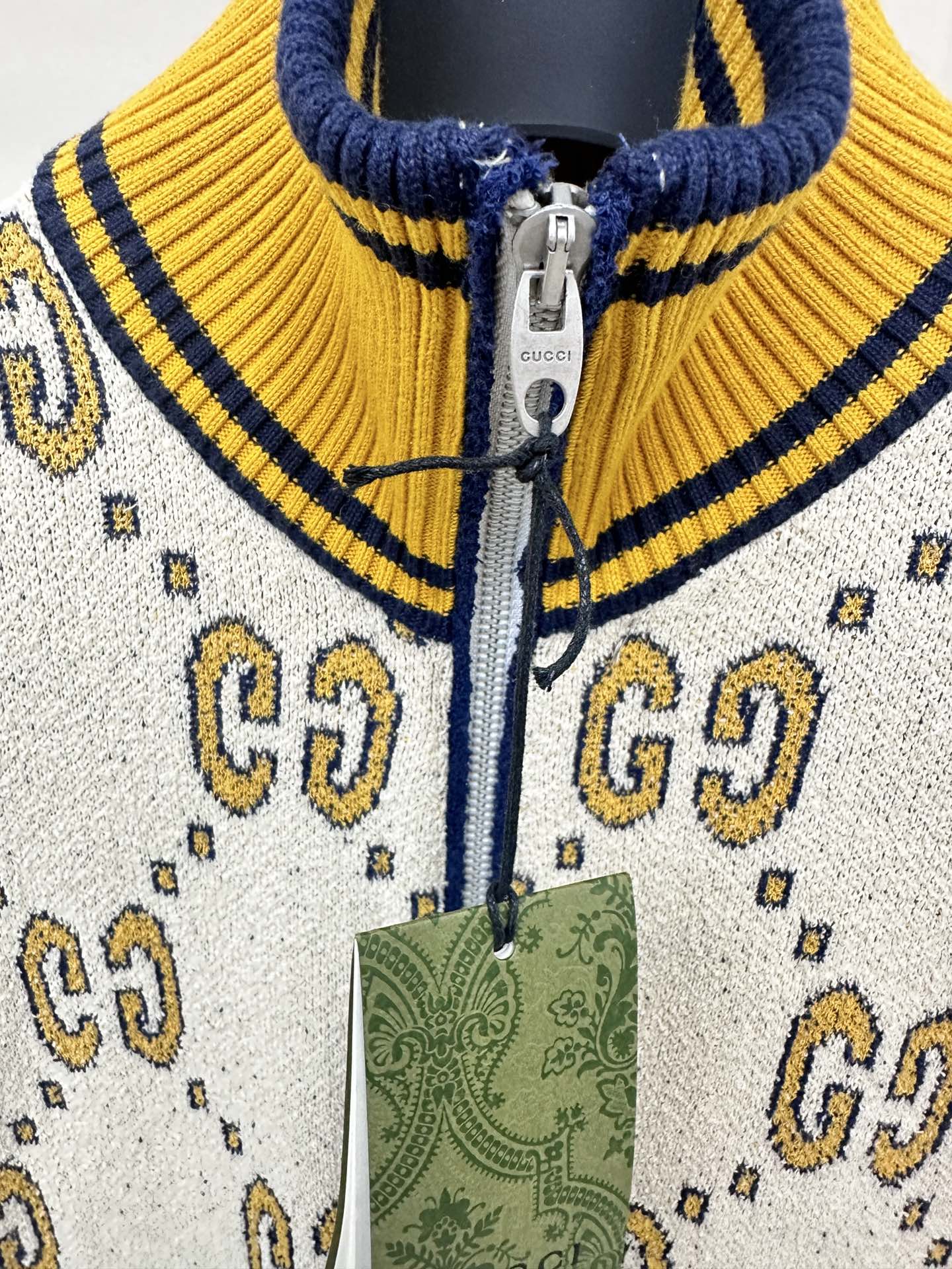 The Gucci GG Cotton Zip Jacket boasts a sleek white and gold design. Made with high-quality cotton, it provides comfort and style. The zip closure offers a secure fit, while the signature GG pattern adds a touch of luxury. Elevate your wardrobe with this statement piece.