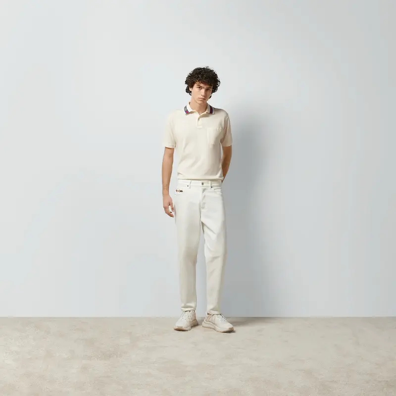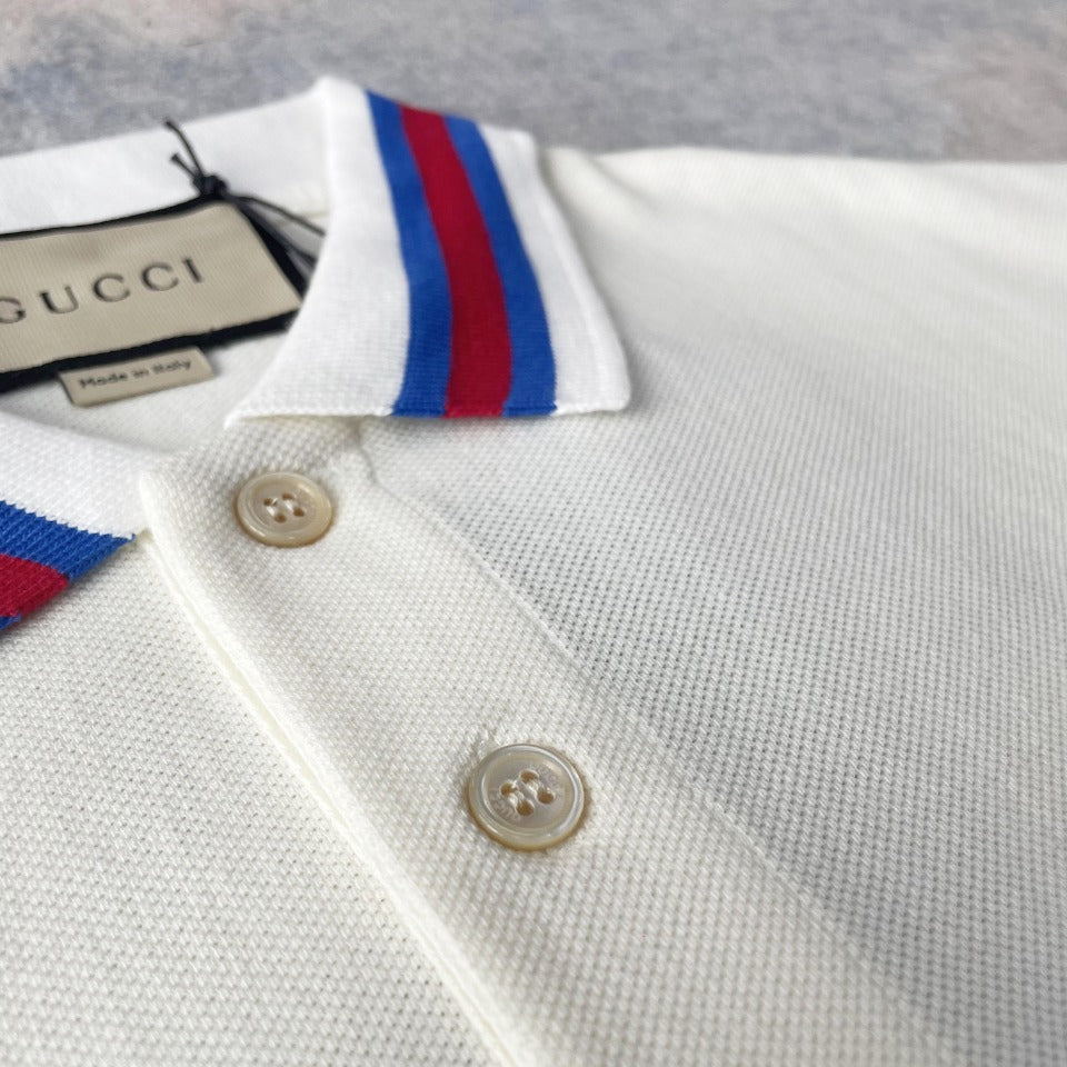 Expertly crafted from premium materials, the Gucci Polo T-Shirt elevates any casual outfit. The classic polo design is updated with the iconic Gucci logo, making for a stylish and versatile addition to any wardrobe. Made with quality and sophistication in mind, this polo shirt is perfect for the modern fashion-forward individual.