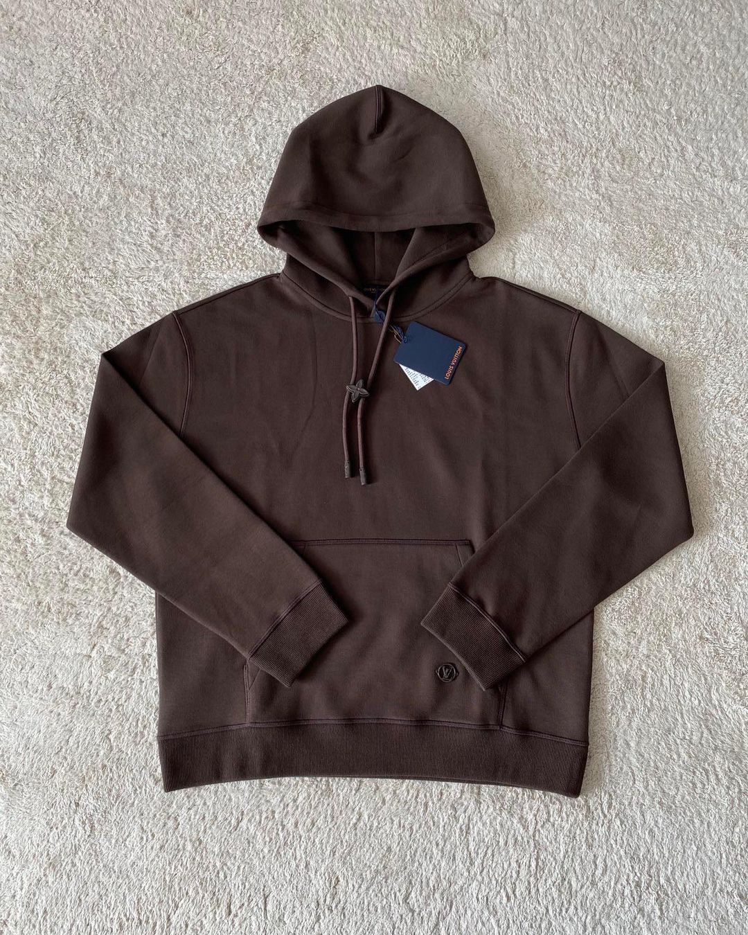 This Louis Vuitton hoodie is available in either a rich brown or a deep green. Made with high-quality materials and featuring the iconic LV logo, this hoodie is the perfect addition to any stylish wardrobe. Elevate your look with this luxury piece.