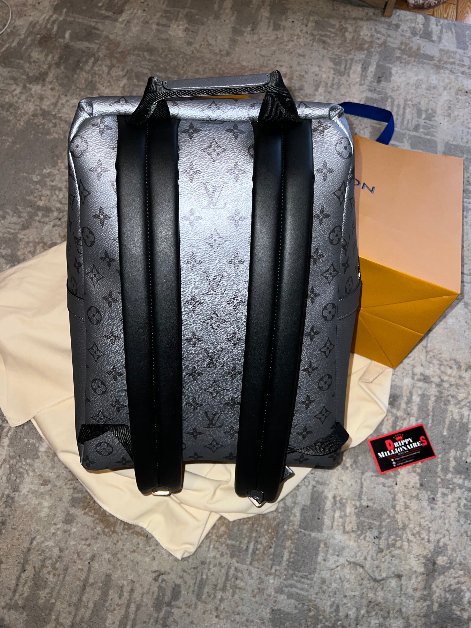 The Discovery Backpack MM is made from masculine Monogram Eclipse canvas with palladium-color hardware. The front pocket gives easy access to essentials while three inside pockets and a double-zipper closure keep belongings safe and organized. The adjustable leather straps make this emblematic Louis Vuitton backpack comfortable to wear.