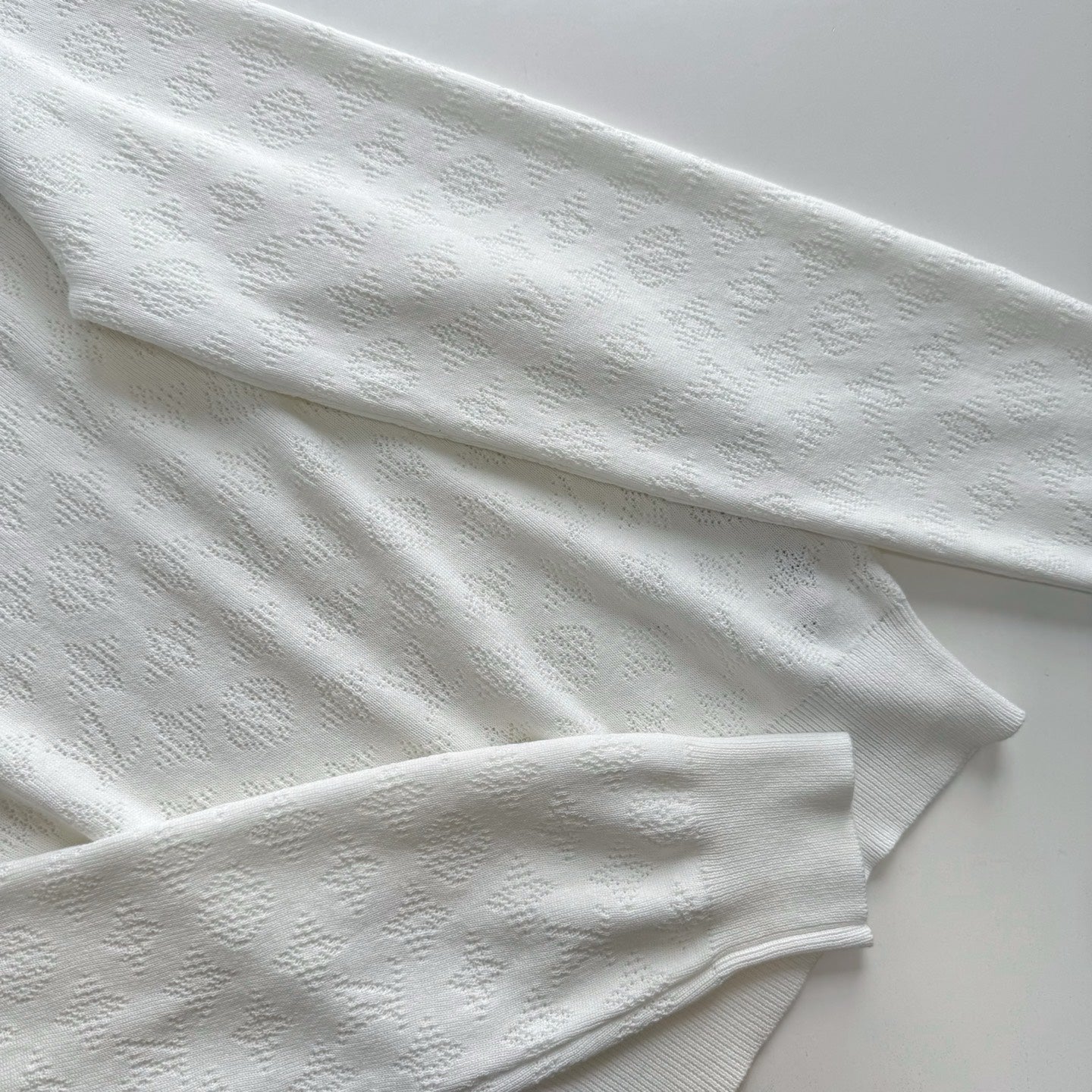 This smart sweatshirt in compact cotton jersey is inspired by the dreamlike shifting colors of the aurora borealis of this collection. The relaxed silhouette is embellished with a scattered embroidered Monogram across the front and back in luminescent jewel tones, giving a festive winter mood. This piece brings an elevated twist to a casual silhouette.