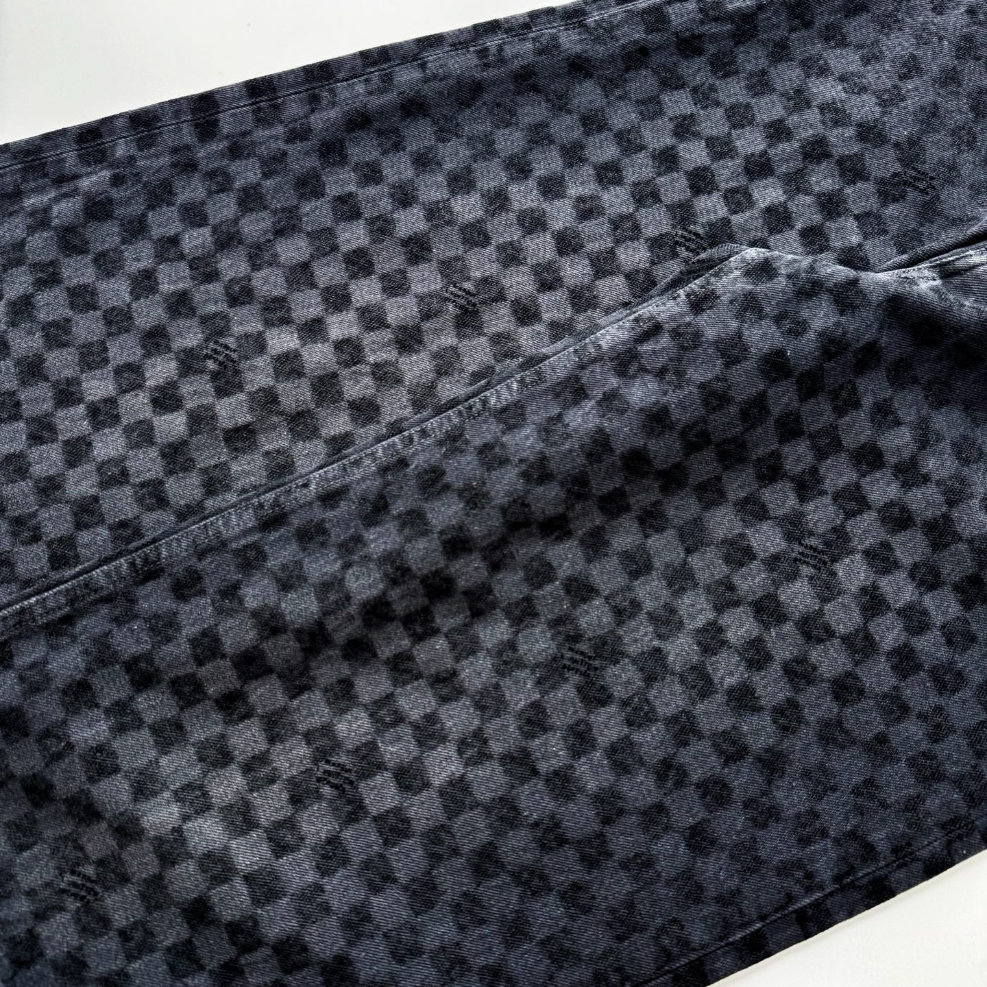 - LV embroidery on the back pocket