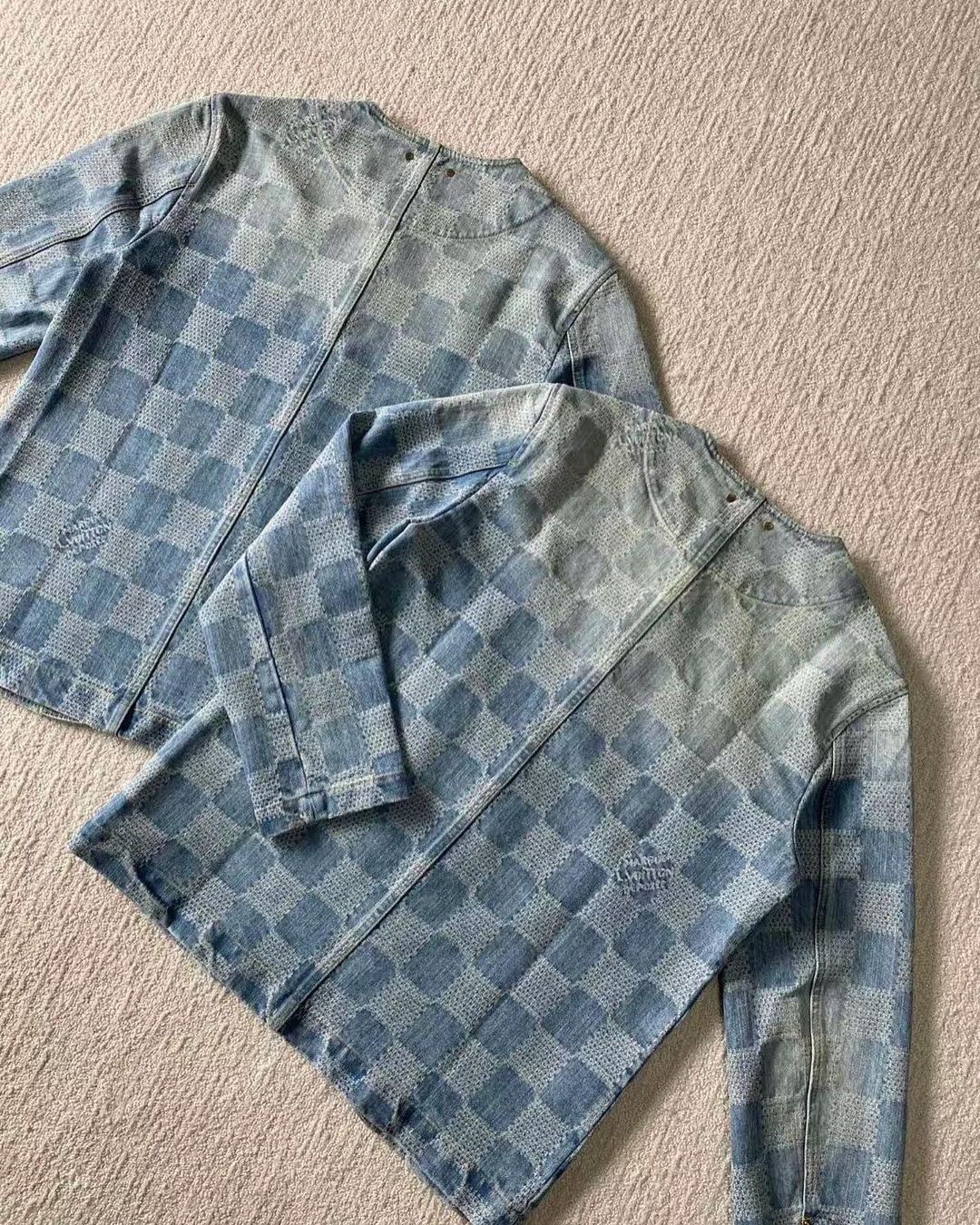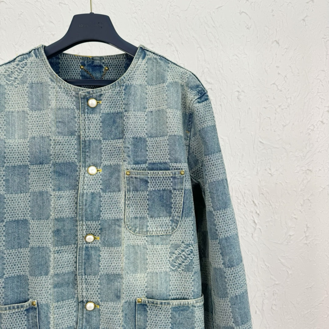 Upgrade your wardrobe with the Lv denim jacket. Made by Louis Vuitton, this stylish jacket features button closures and is crafted from high-quality denim. Elevate your fashion game while enjoying the luxury and durability of this designer piece.