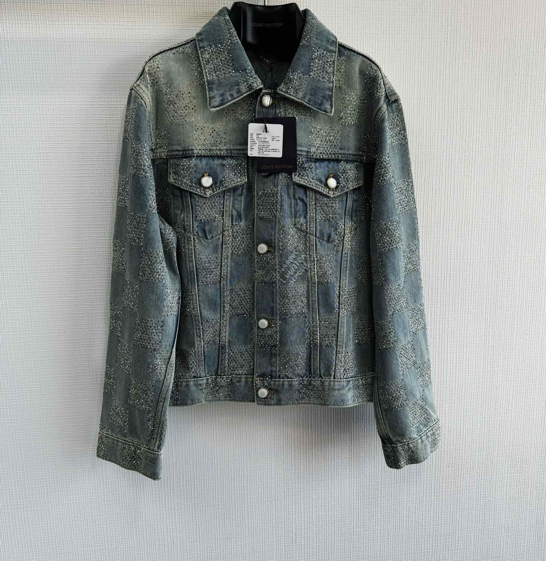 Upgrade your wardrobe with the Lv denim jacket. Made by Louis Vuitton, this stylish jacket features button closures and is crafted from high-quality denim. Elevate your fashion game while enjoying the luxury and durability of this designer piece.