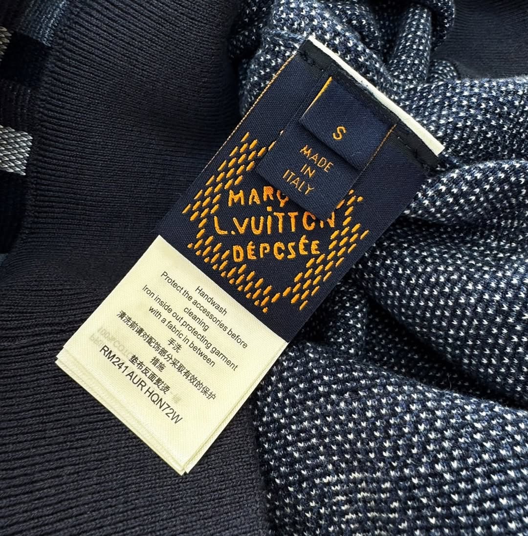 This smart blue sweatshirt in compact cotton jersey is inspired by the dreamlike shifting colors of the aurora borealis of this collection. The relaxed silhouette is embellished with a scattered embroidered Monogram across the front and back in luminescent jewel tones, giving a festive winter mood. This piece brings an elevated twist to a casual silhouette.