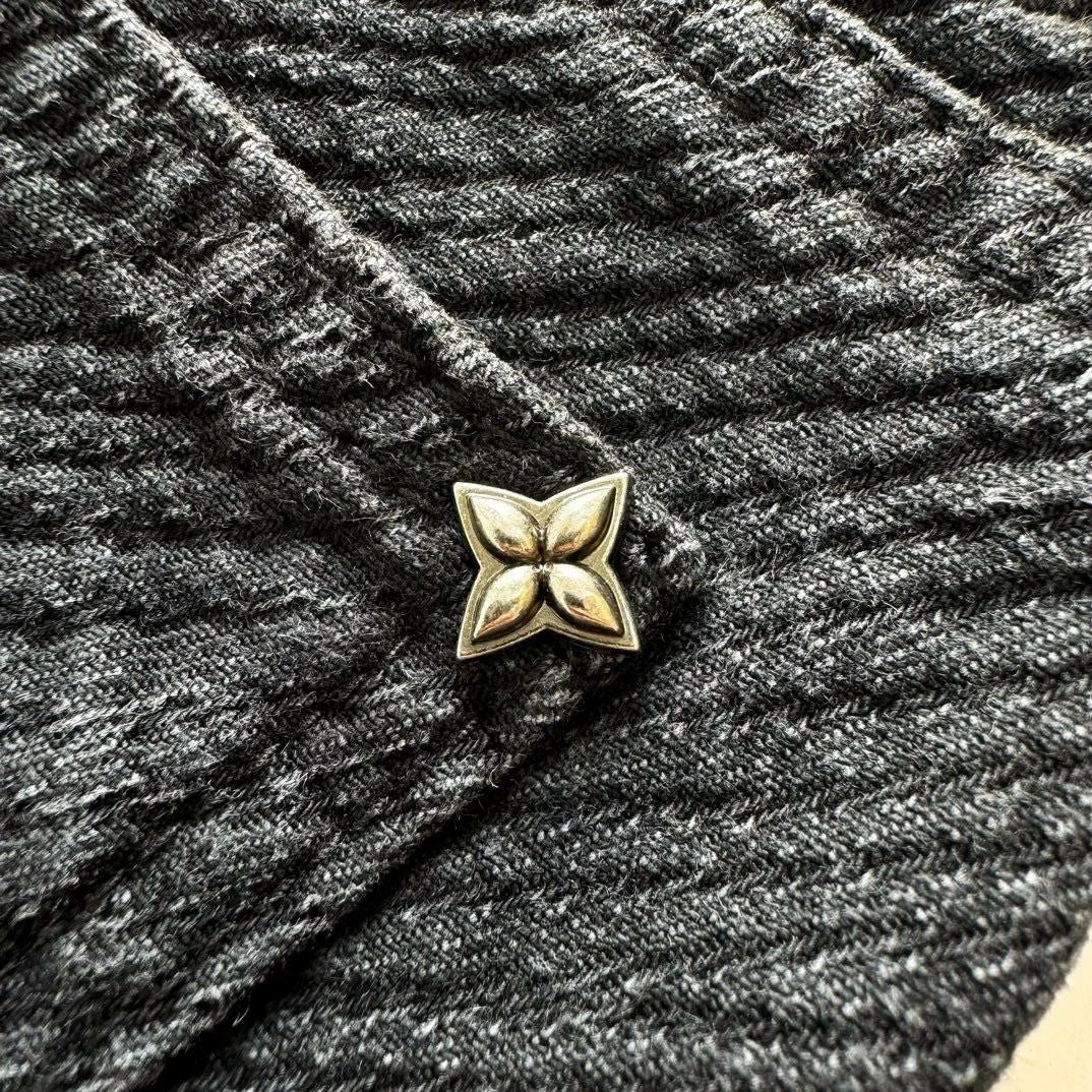 These washed black denim pants showcase the House’s savoir-faire, layering a diagonal Epi jacquard with a printed Monogram Macro motif in a dark-to-light gradient effect. Monogram Flower studs embellish the coin pocket while a nubuck Damier jacqueron signs the back. This meticulously crafted piece has a matching jacket for a casual yet sophisticated look.
