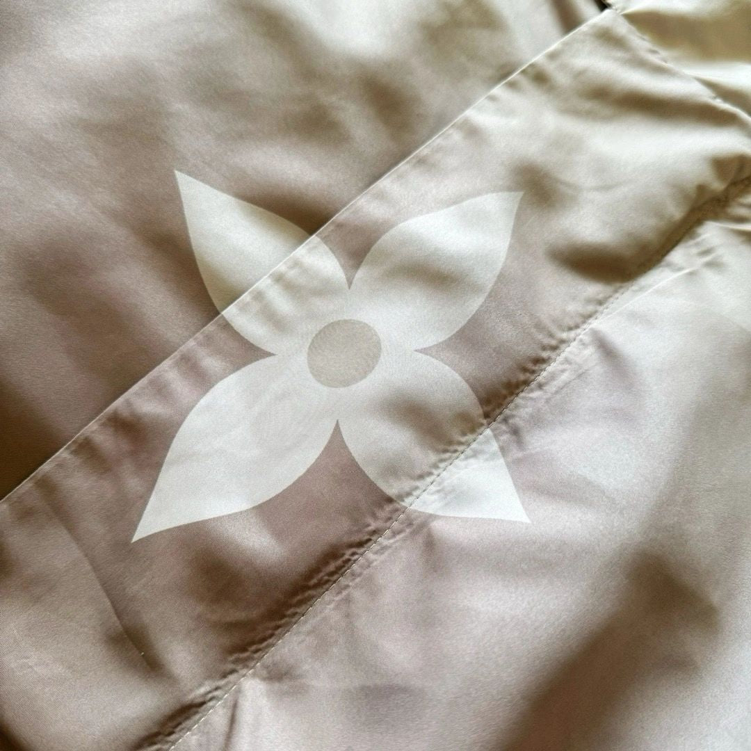 This lightweight windbreaker brings a chic touch to functional outerwear, adorned with a graphic Monogram Macro motif in a dark-to-light gradient. The sporty silhouette is elegantly streamlined, with a tall collar fastened to one side, a concealed zip placket and hidden side pockets. Elegant beige tones make this is a versatile piece to mix and match.