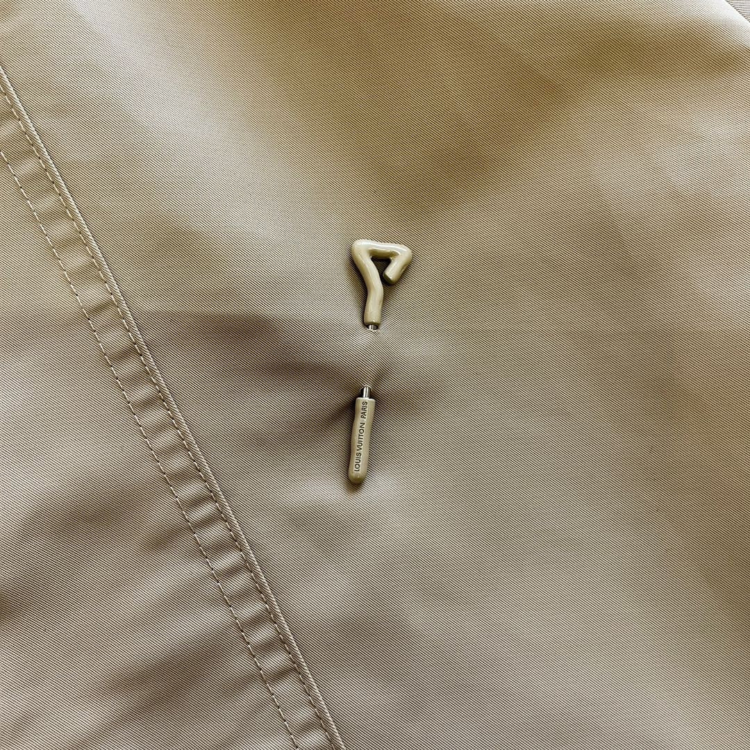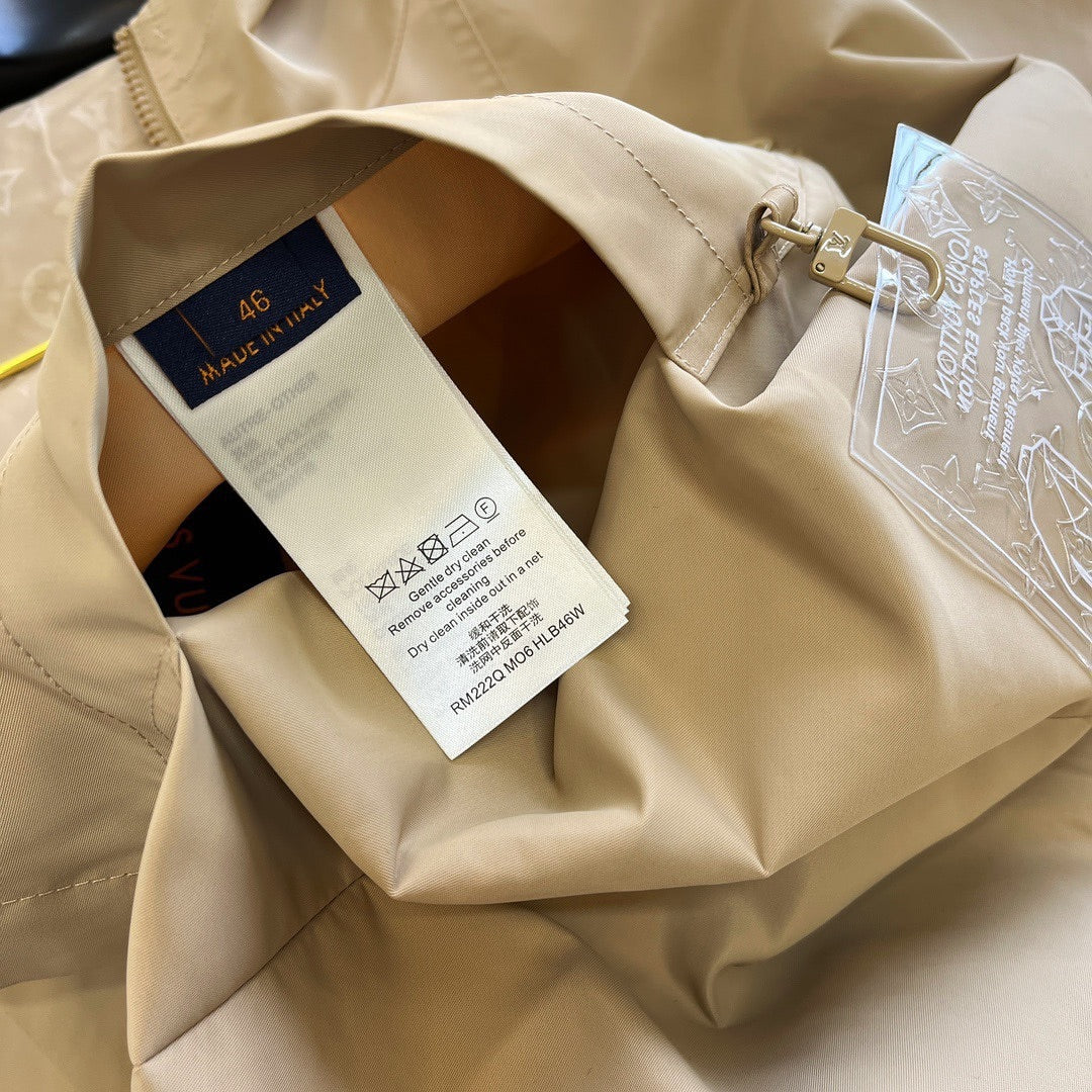 This sporty reversible windbreaker features an allover Monogram motif on one side and plain fabric on the other. It has a hood, a zip closure and elasticated cuffs and bottom hem. It is signed with a tonal LV Staples pin on the chest and a removable Staples tag attached with a tonal carabiner.