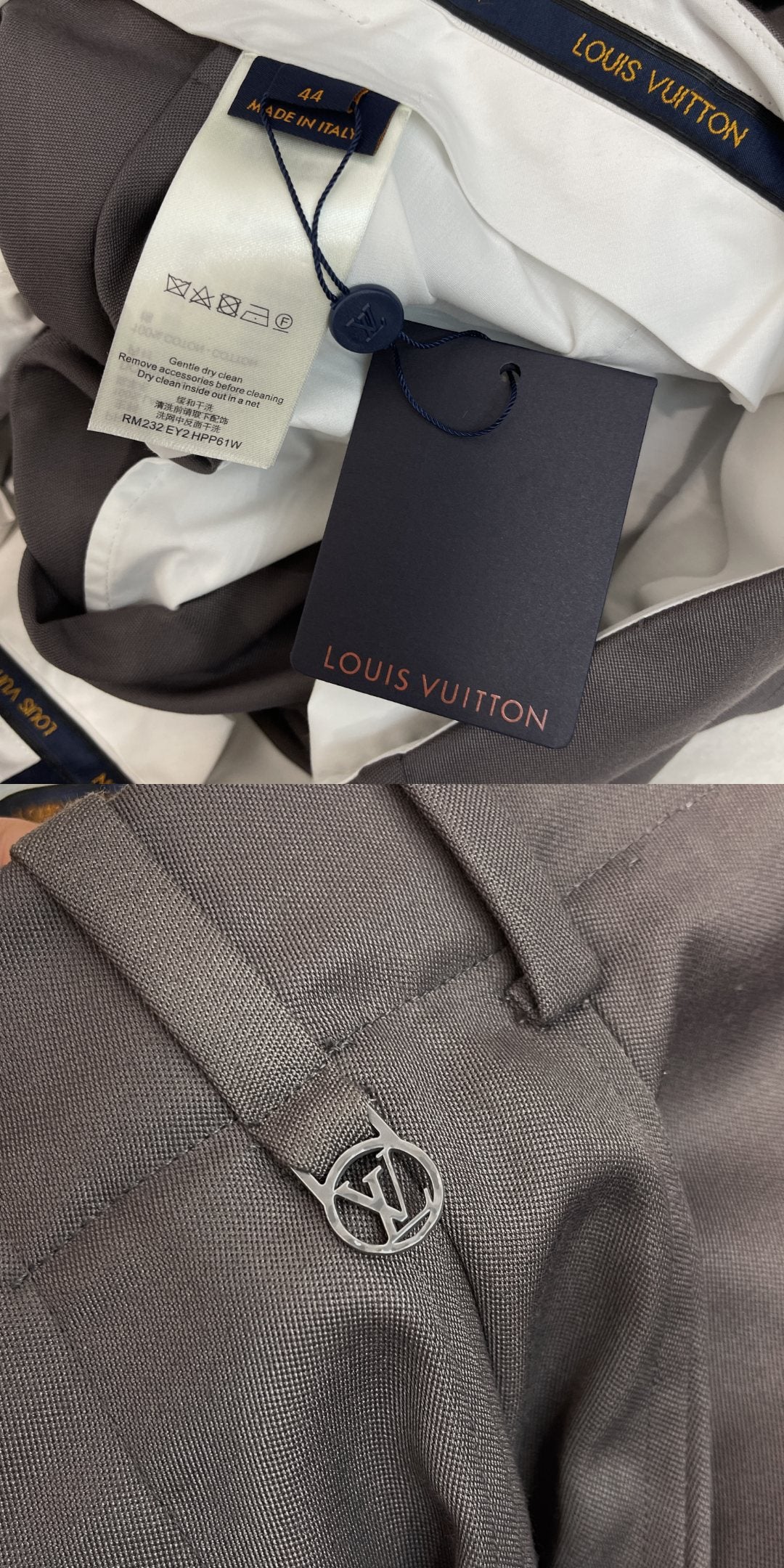 These washed black carpenter pants are an essential classic for everyday looks. They are richly detailed, with a Monogram pocketa and chaps and hammer holder loops in the shape of an L and a V. A zipped bottom hem creates space for the House’s iconic sneakers. This piece has a matching workwear shirt for a contemporary look.