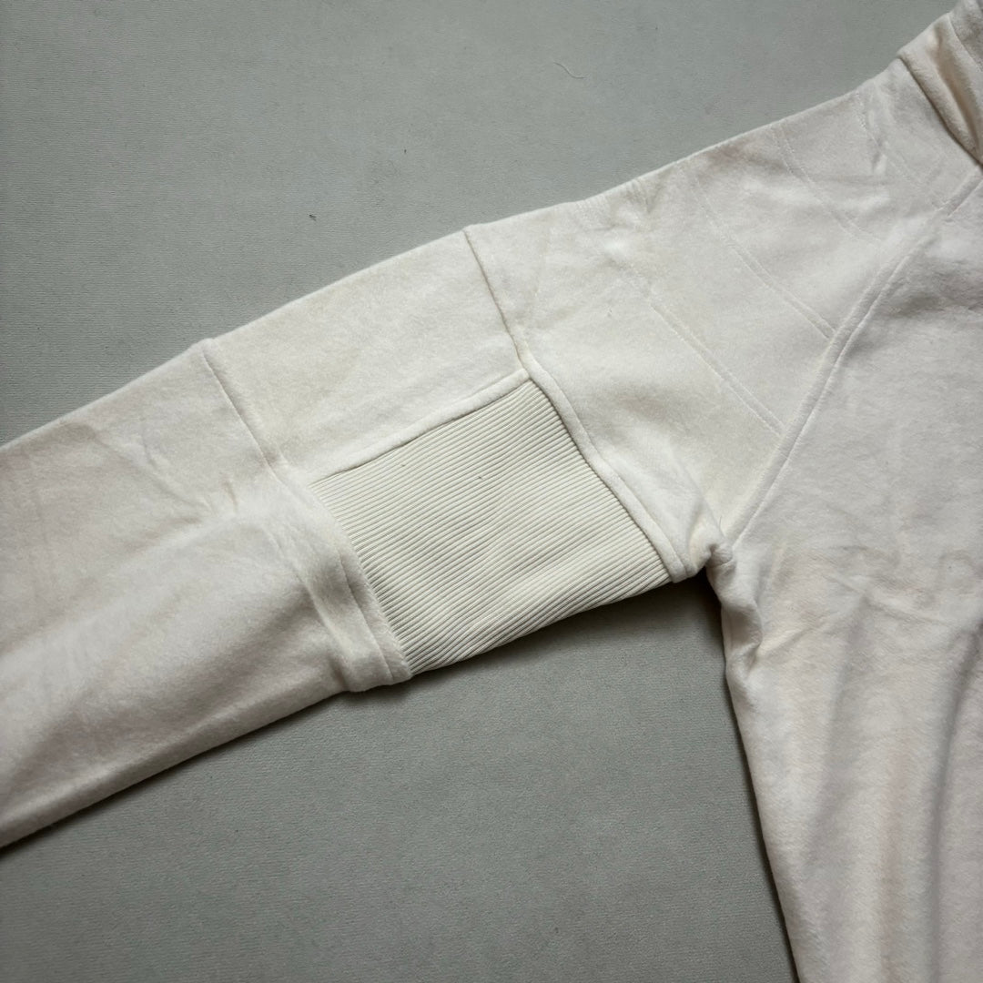 Casual yet elegant, this loungewear-inspired blouson is perfect for traveling, crafted from warm, softly textured wool fleece in timeless cream tones. The sporty tailoring features a tall, drawstring-adjusted collar and raglan sleeves with ribbed elbows for ease of movement. Topstitching creates a smart, quilted effect with an embroidered LV on the chest. Matching pants make a cosy set. - Relaxed Fit - LV embroidery on the chest - Sporty quilted details on the sleeves and chest - Ribbed cuffs and bottom hem - Raglan sleeves - Kangaroo pockets - Milky White - 100% Wool - Made in Italy