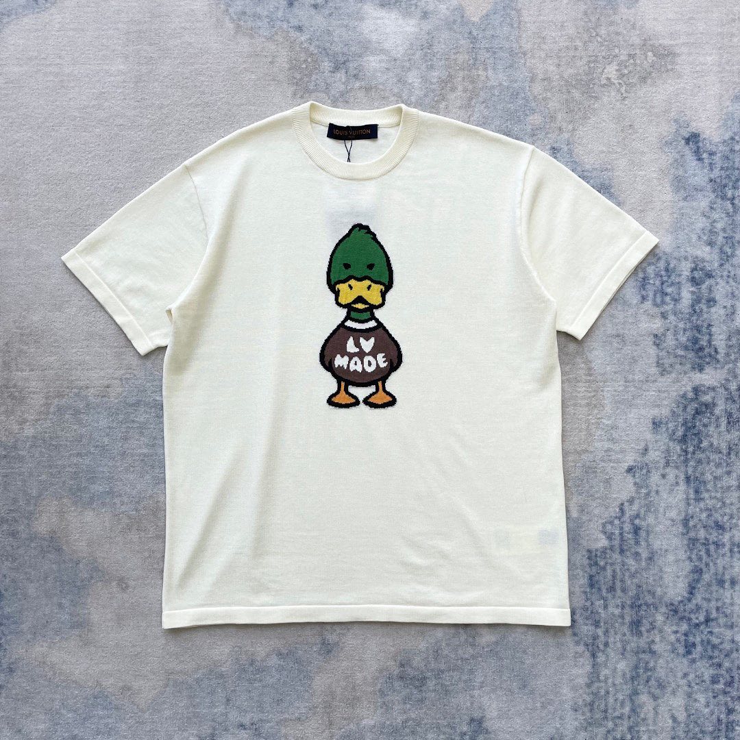 Expertly crafted and designed, this Louis Vuitton t-shirt features a sleek black design with contrasting white text. Made with the finest materials, this t-shirt exudes luxury and sophistication. Perfect for adding a touch of elegance to any wardrobe.