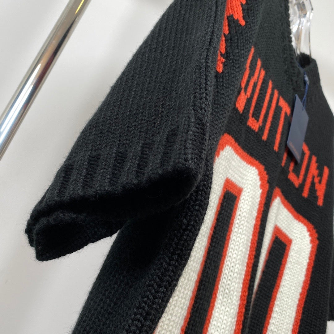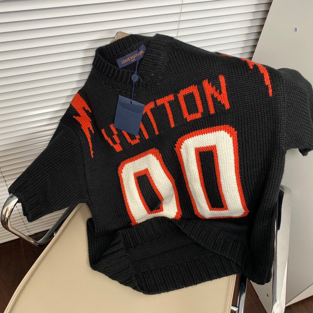 Expertly crafted and designed, this Louis Vuitton t-shirt features a sleek black design with contrasting white text. Made with the finest materials, this t-shirt exudes luxury and sophistication. Perfect for adding a touch of elegance to any wardrobe.