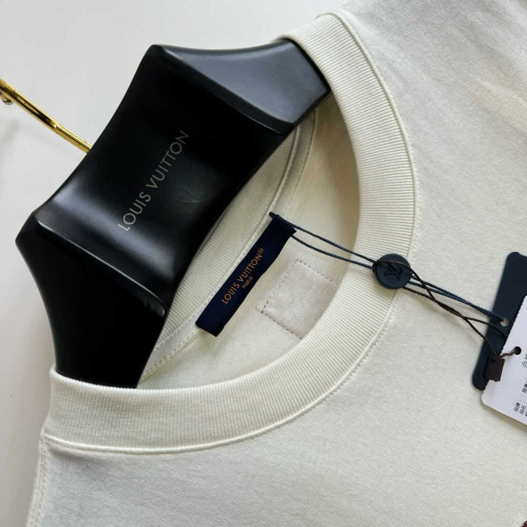 Expertly crafted and designed, this Louis Vuitton t-shirt features a sleek black design with contrasting white text. Made with the finest materials, this t-shirt exudes luxury and sophistication. Perfect for adding a touch of elegance to any wardrobe.