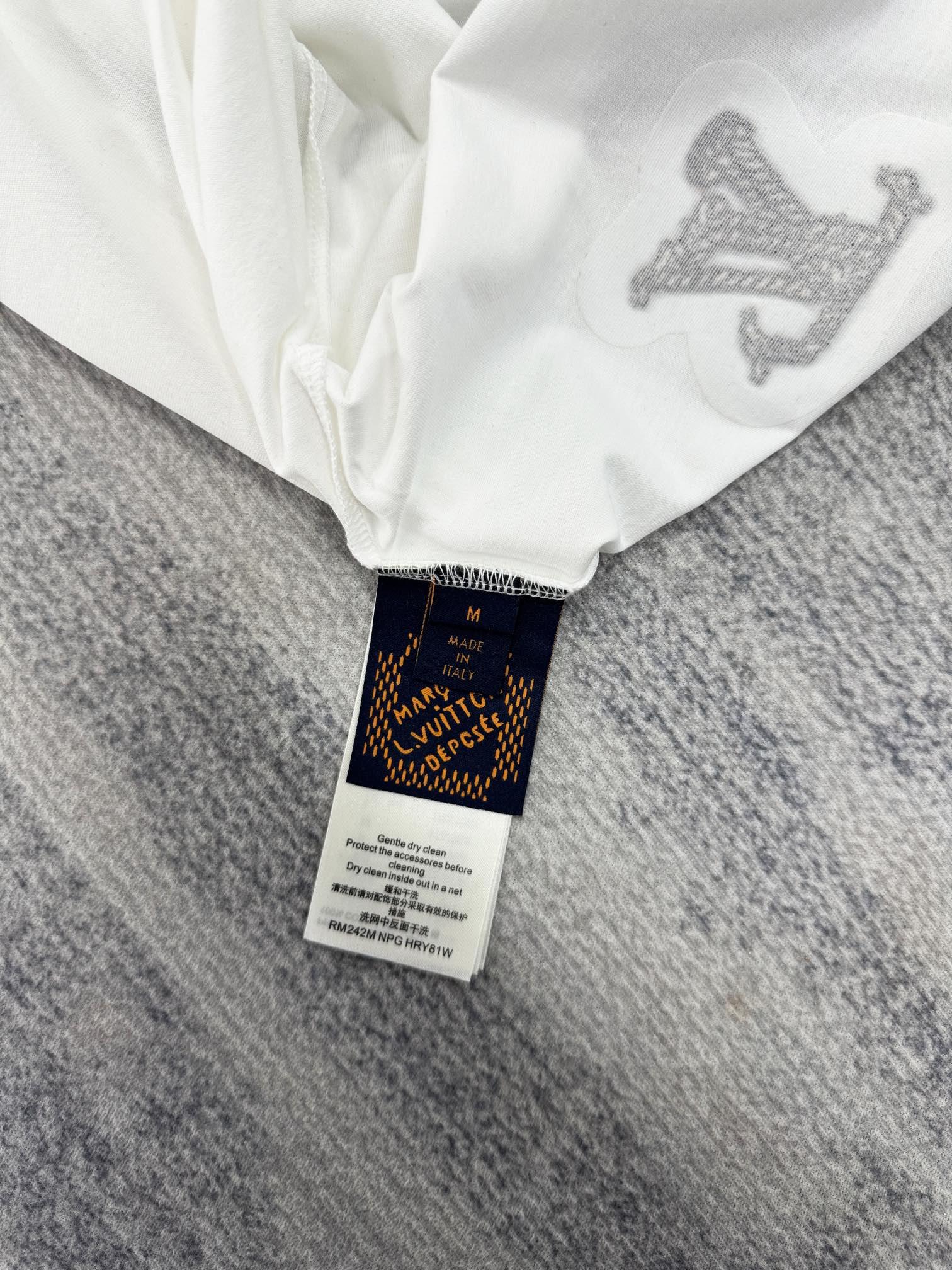 Expertly crafted and designed, this Louis Vuitton t-shirt features a sleek black design with contrasting white text. Made with the finest materials, this t-shirt exudes luxury and sophistication. Perfect for adding a touch of elegance to any wardrobe.