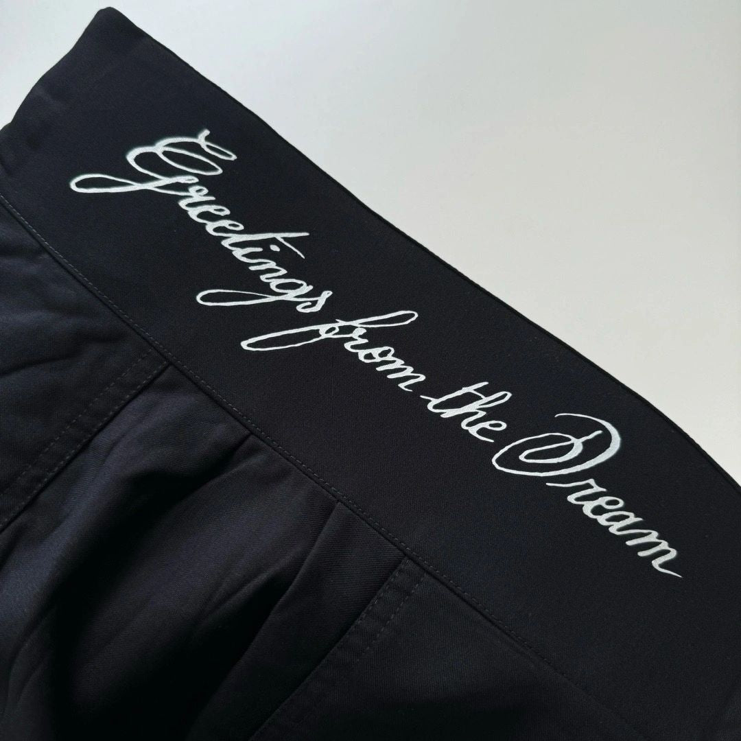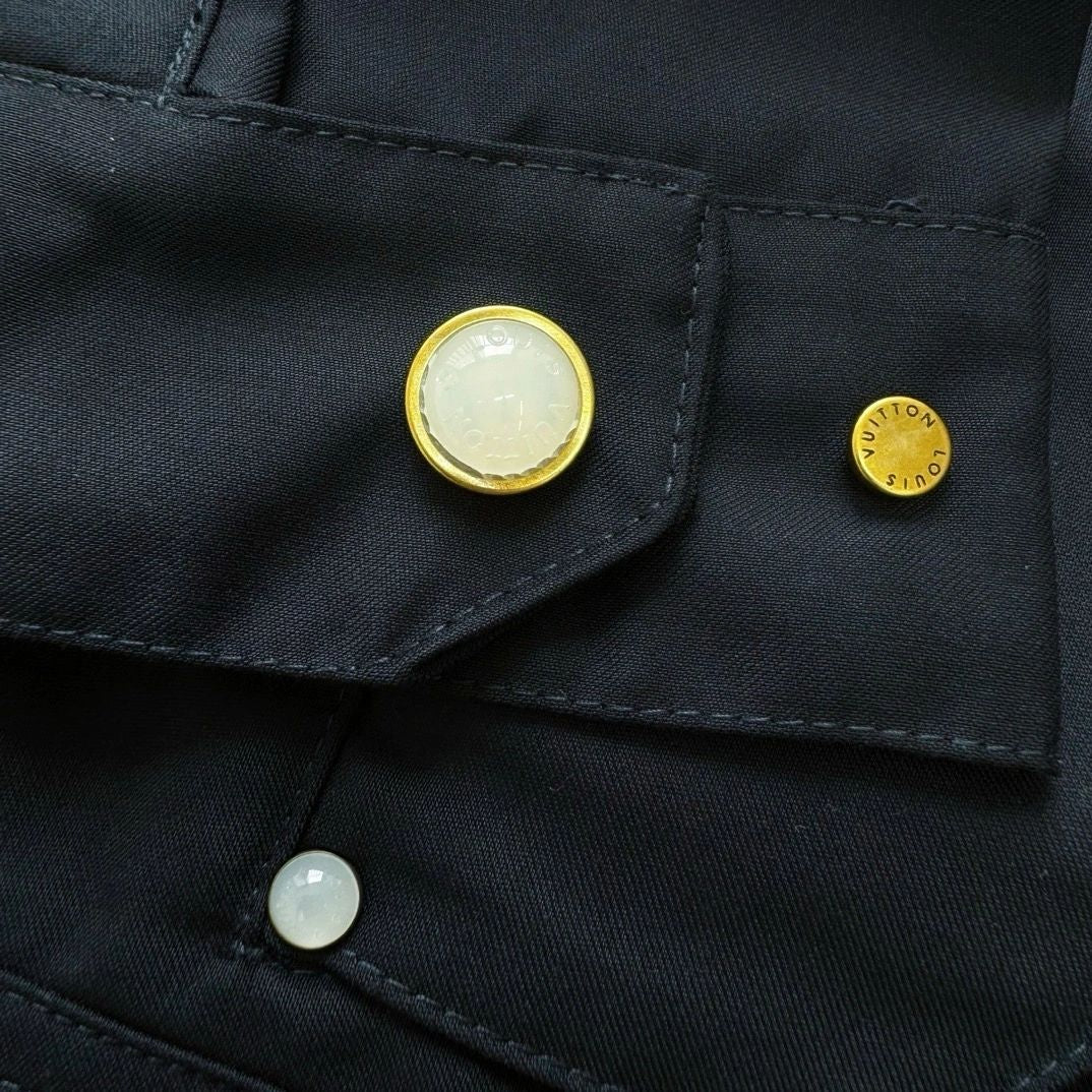 This contemporary sailor-inspired parka is perfect for navigating mid-season days in the city. Crafted from an elegant navy blue wool, it is embellished with a printed cursive Louis Vuitton on the chest and a slogan from the collection on the hood. Sporty details include a tall collar that protects against sea breezes, laser-cut holes for breathability and an internal drawstring waist creating a flattering gathered effect.