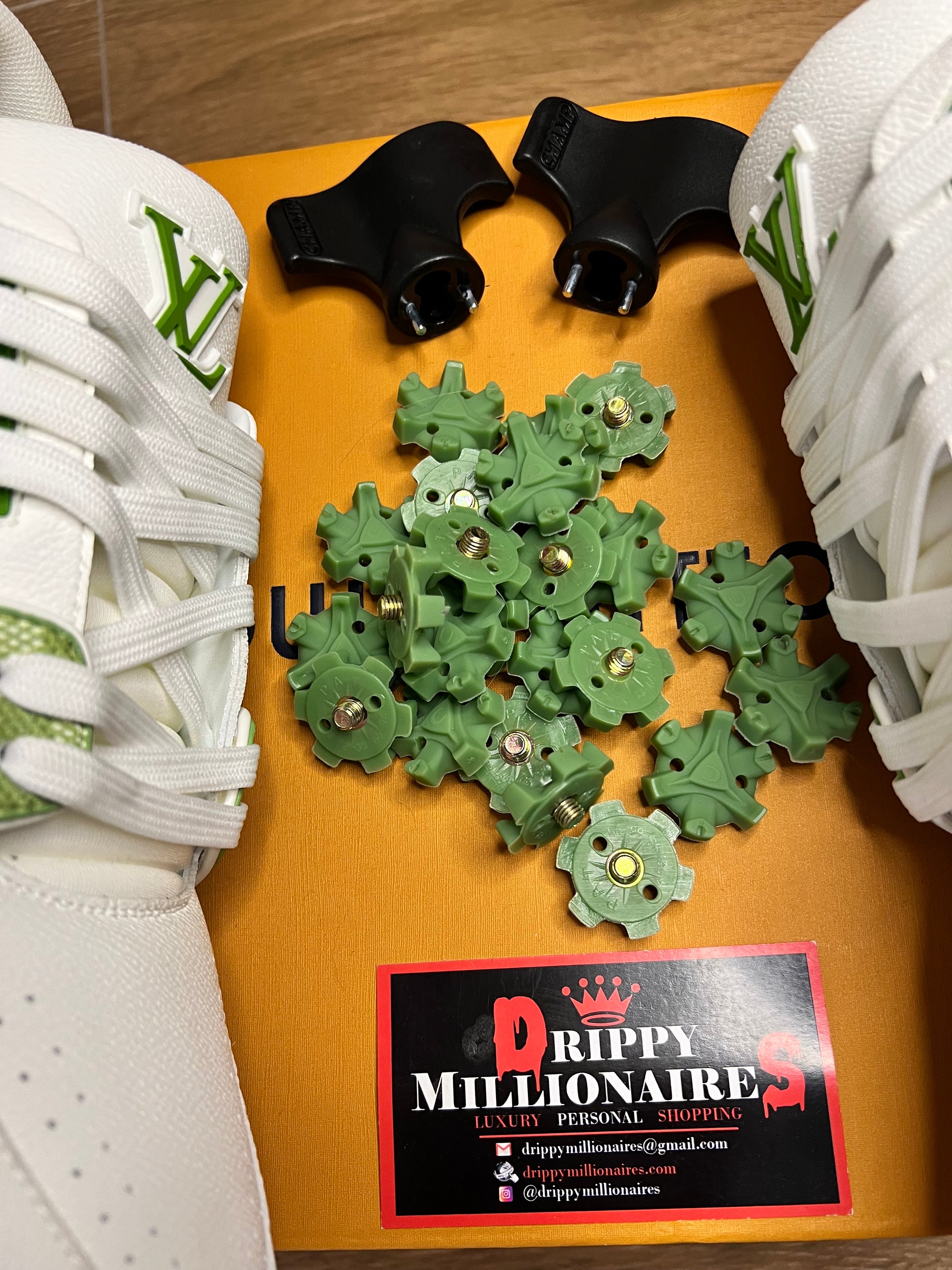 This version of the LV Trainer sneaker is crafted from grained calf leather in a bicolor palette evoking the basketball inspiration of Virgil Abloh's original design. This cult sneaker is notable for its elaborately constructed upper, which takes seven hours to stitch, and for its rich details, including the Louis Vuitton script signature on the side.