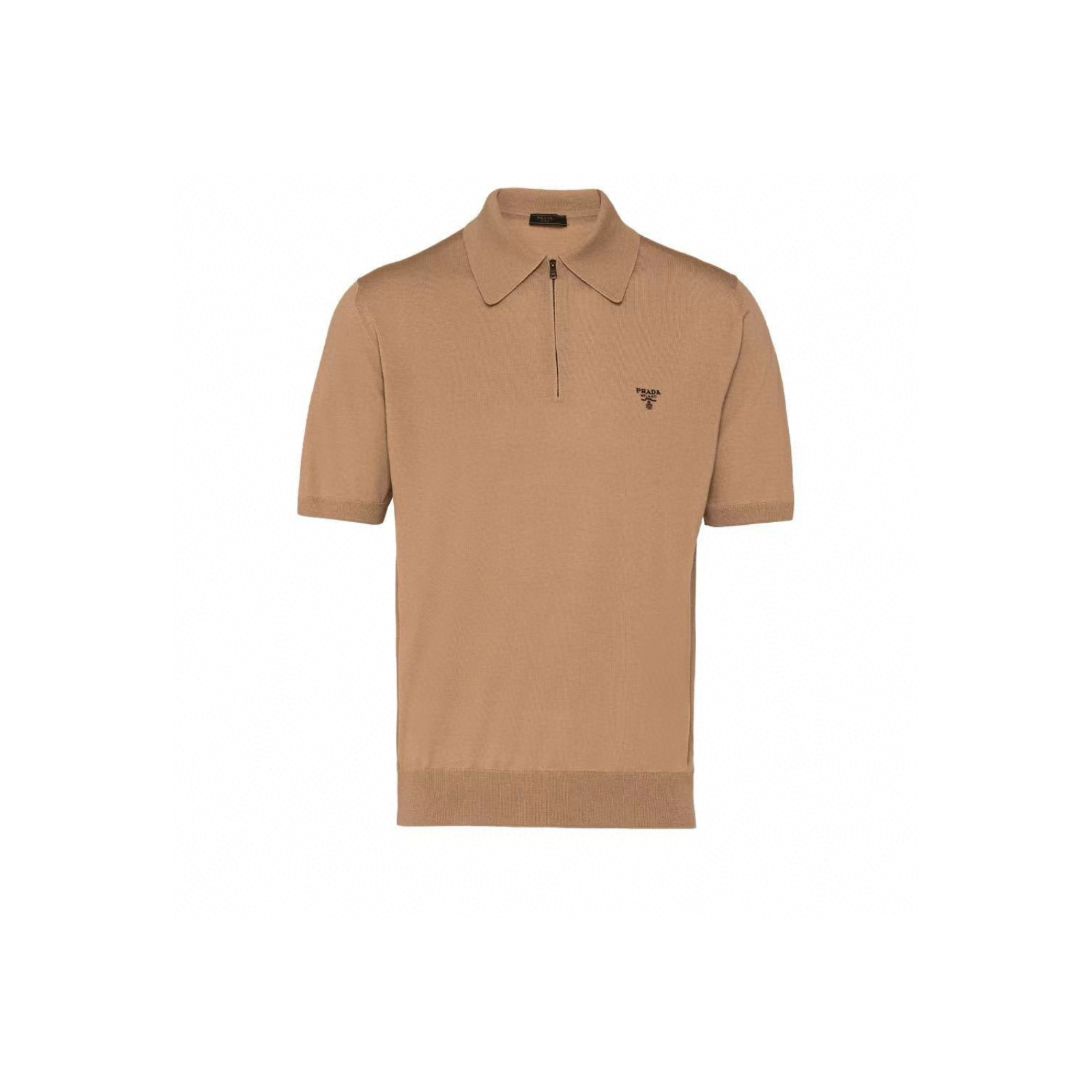 Prada's affinity for a classic piece is evident on this red polo top. Spun from a virgin wool fine knit, the short-sleeved top is simply accented with embroidered logo lettering on the chest.